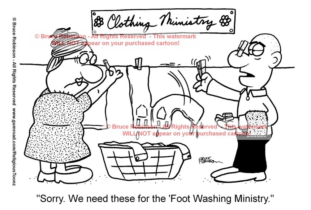 "Sorry. We need these for the Foot Washing Ministry." cartoon
